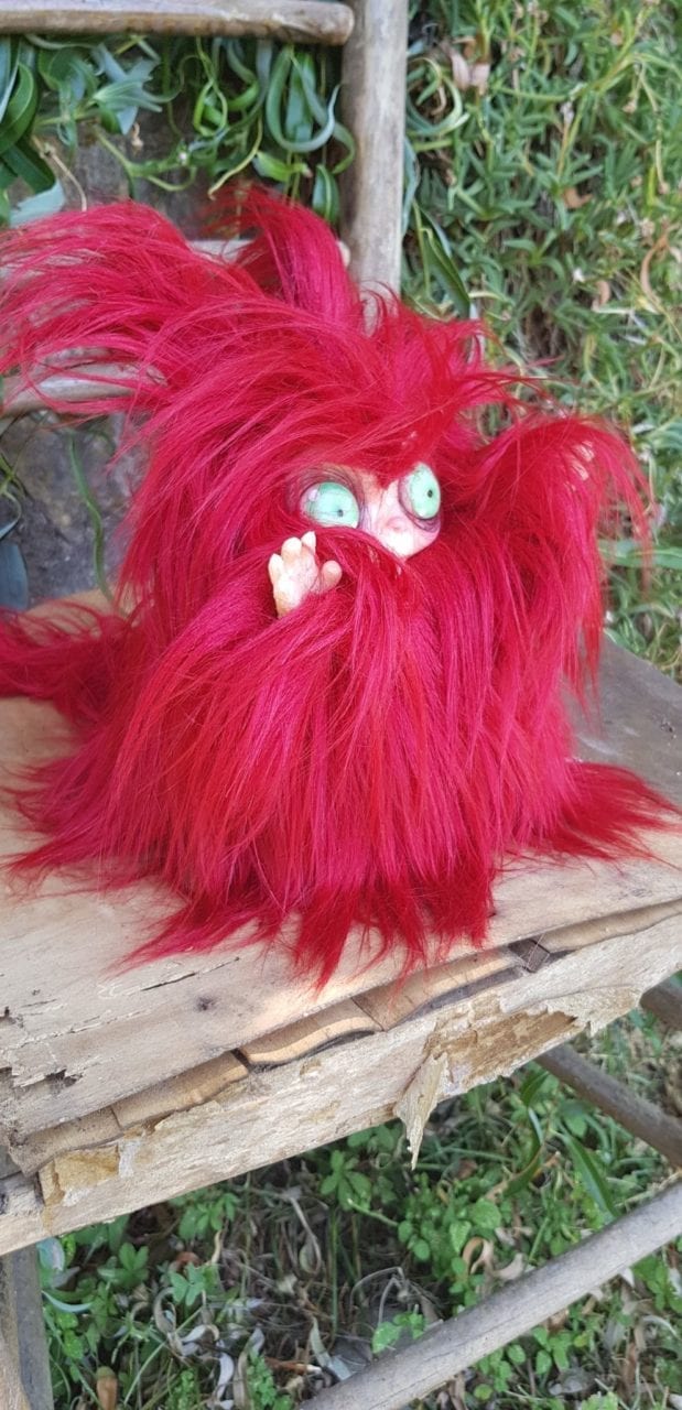 Peluche MicioMicio il Folletto che si traveste da gatto rosso con occhi azzurri