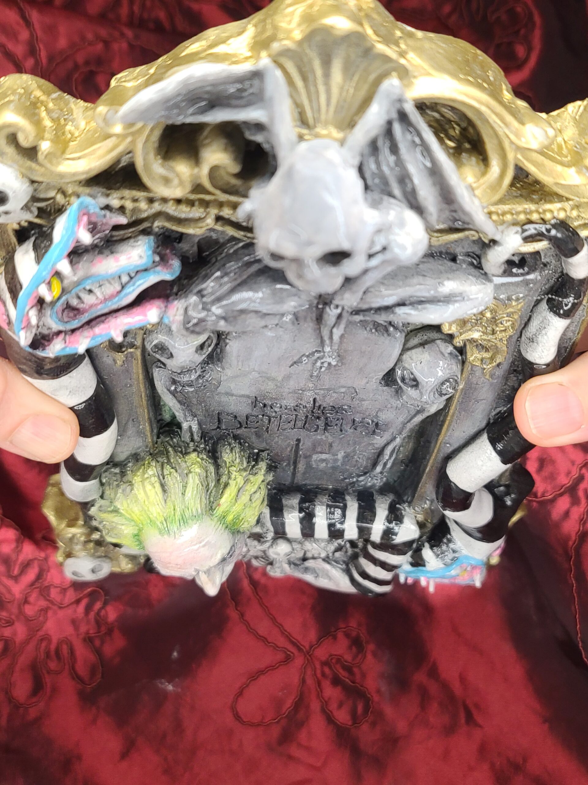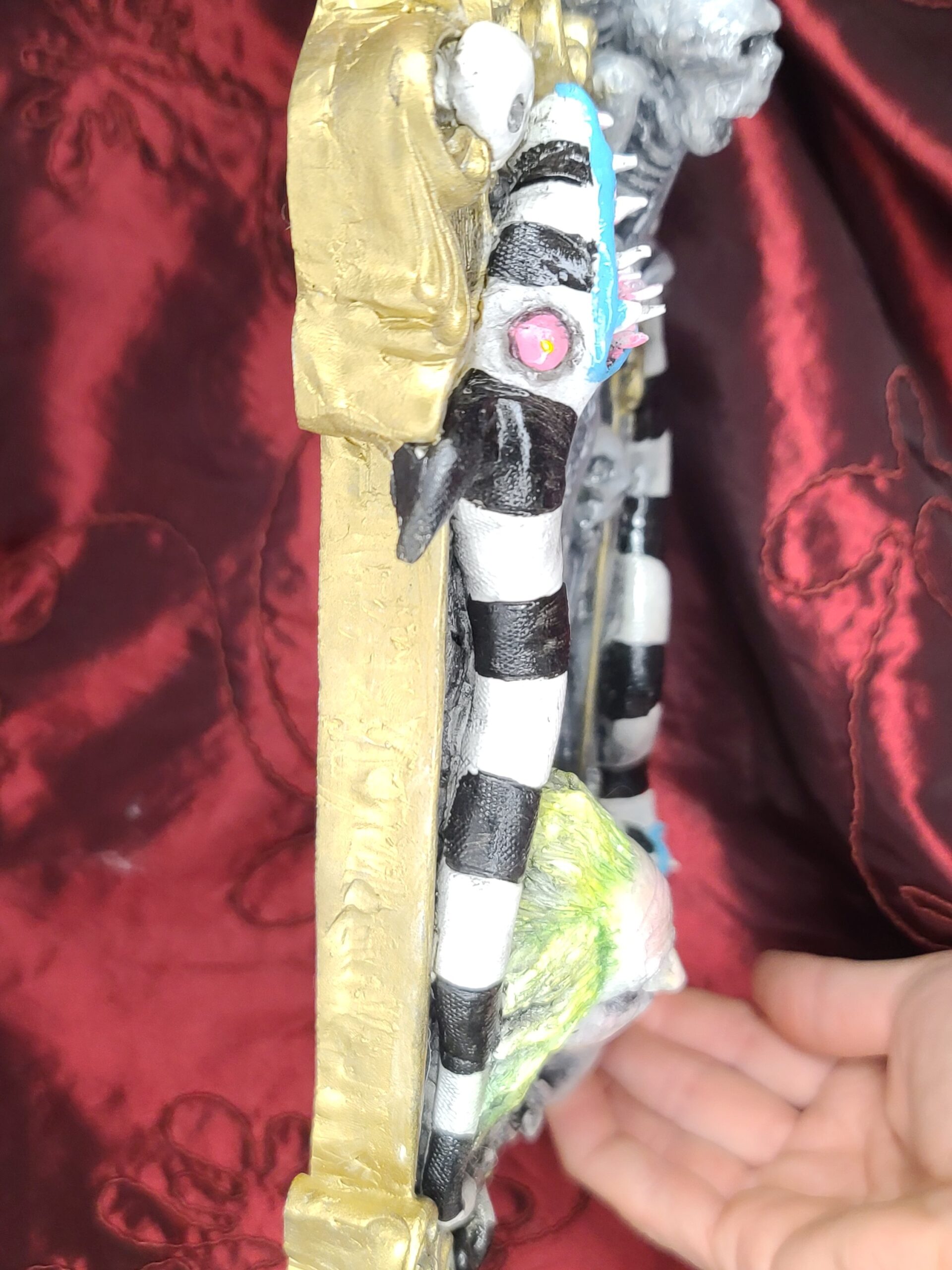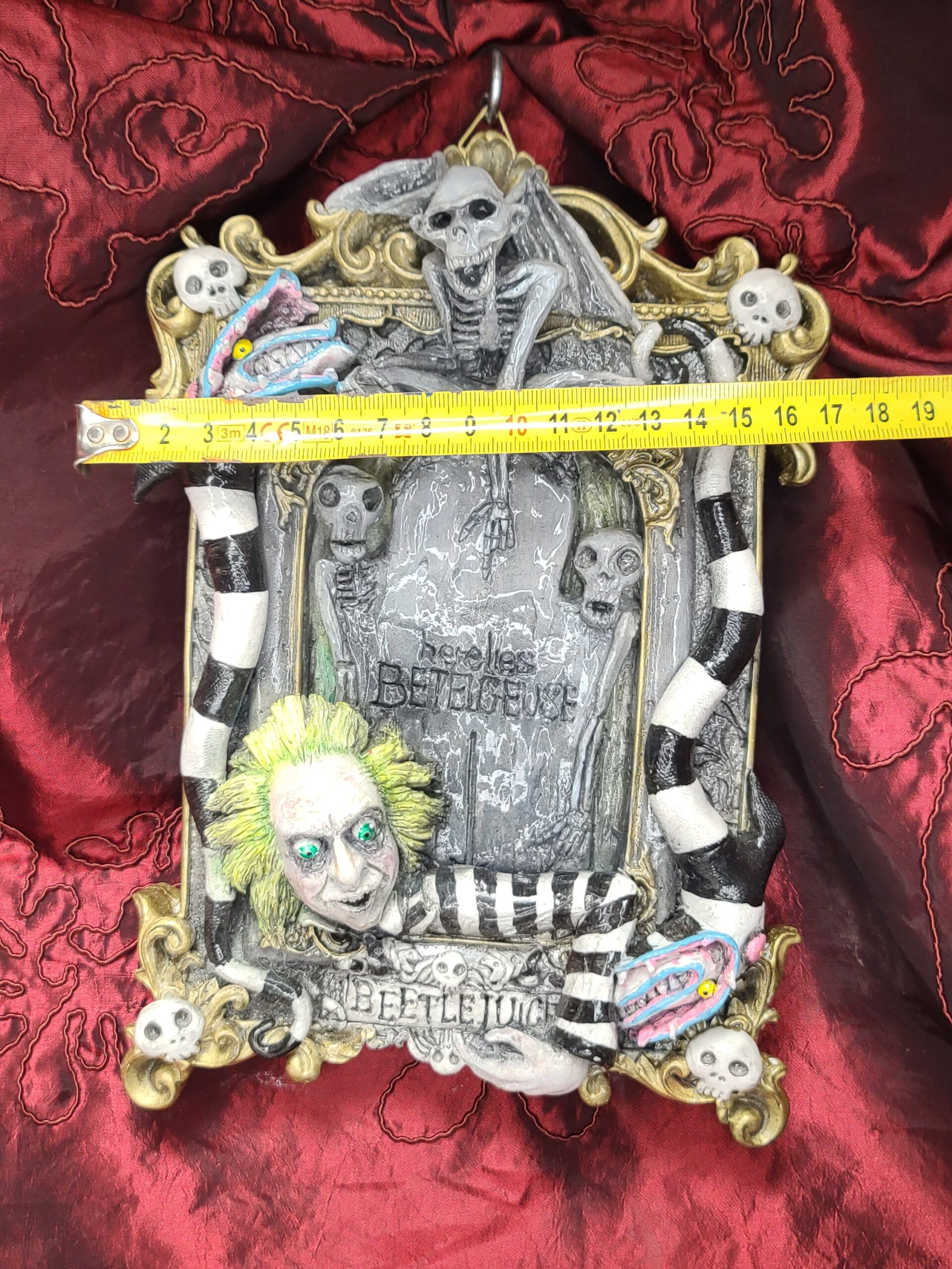 Perfetto come regalo particolare per chi adora Beetlejuice e il mondo gotico–surreale di Tim Burton. Ideale anche come regalo unico per chi cerca un’opera artigianale iconica, scenografica e ricca di personalità.