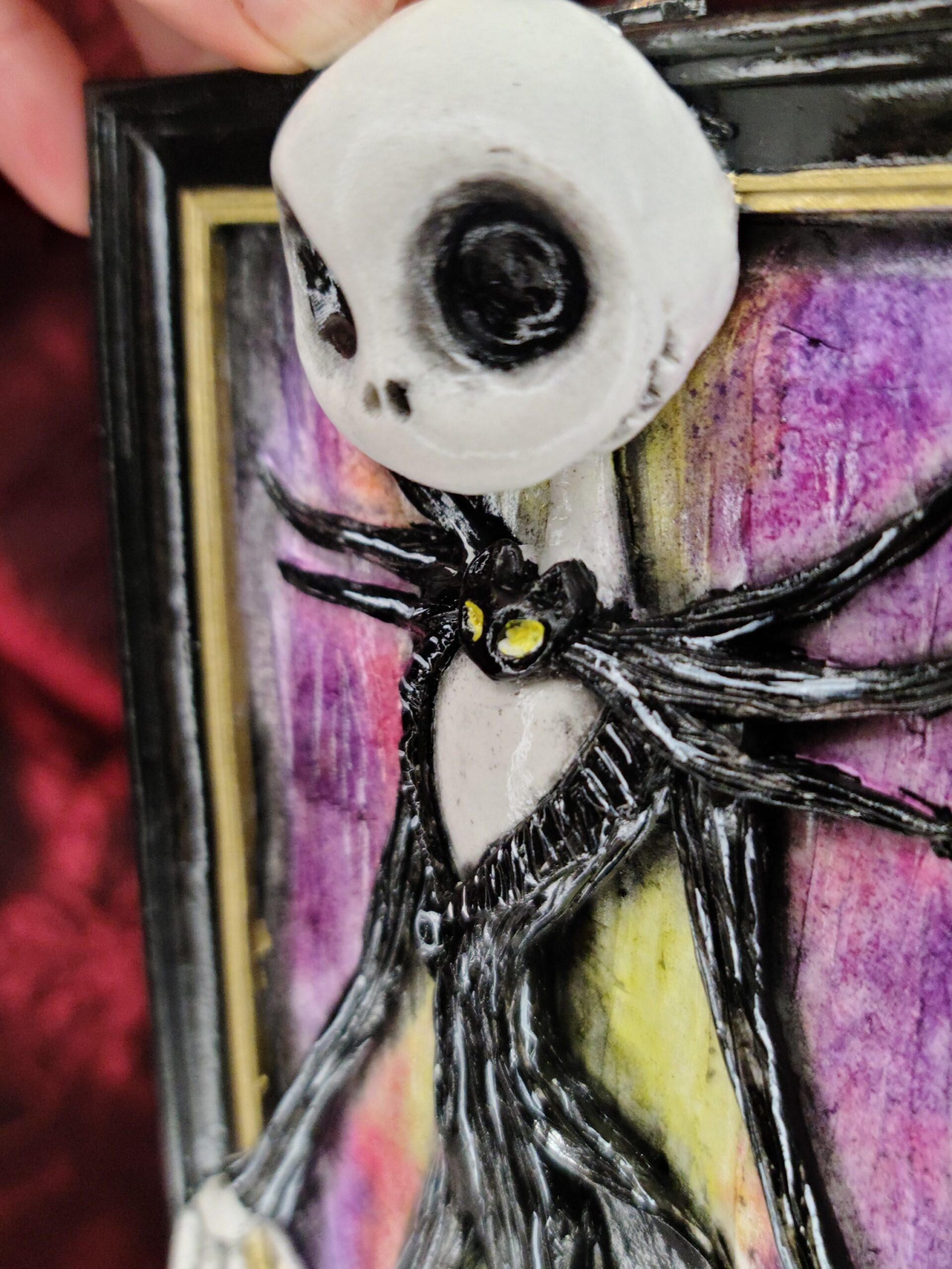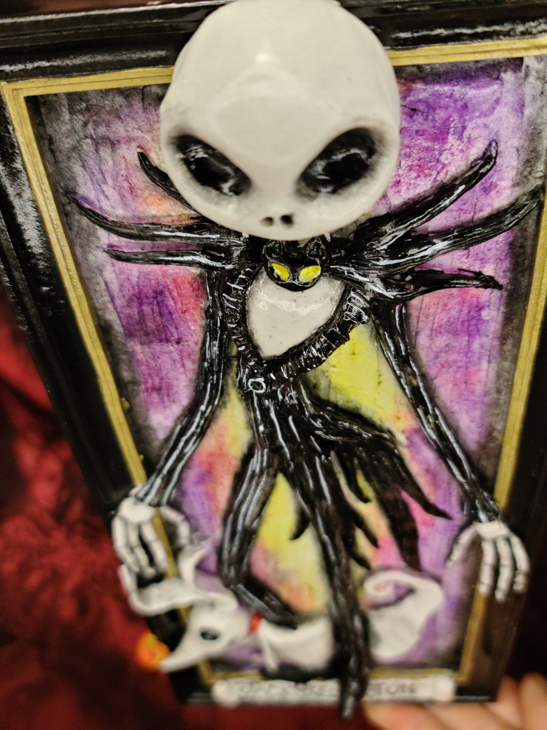 Un quadro tridimensionale artigianale dedicato a Jack Skellington, protagonista indimenticabile del film Nightmare Before Christmas creato da Tim Burton, icona assoluta dello stile gotico-fiabesco. Questa è una personale interpretazione di Jack Skellington realizzata da Serena Pieruccini, che ne cattura l’eleganza scheletrica, il sorriso iconico e l’atmosfera magica tipica dell’opera originale. Un quadro tridimensionale artigianale ideale per chi ama l’estetica dark e il mondo creativo di Tim Burton.