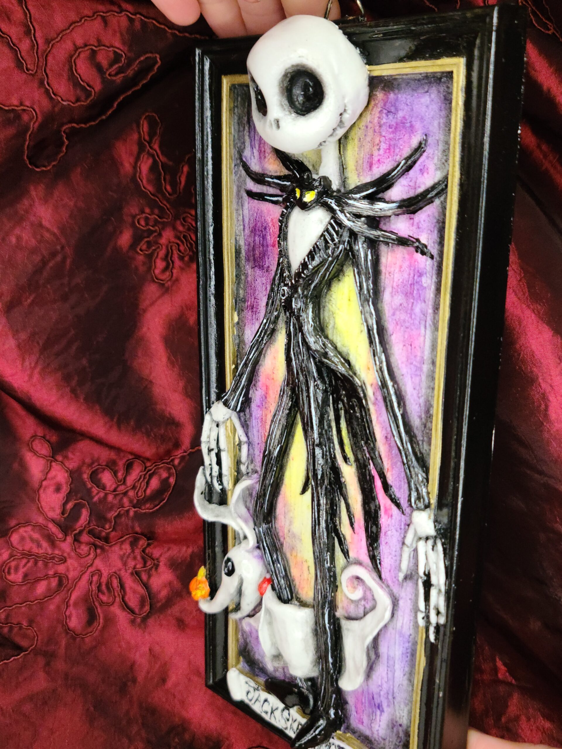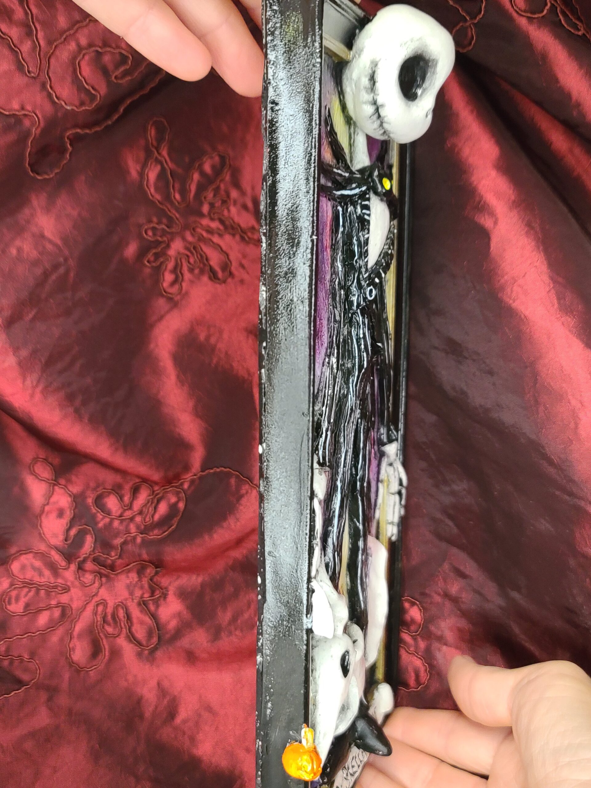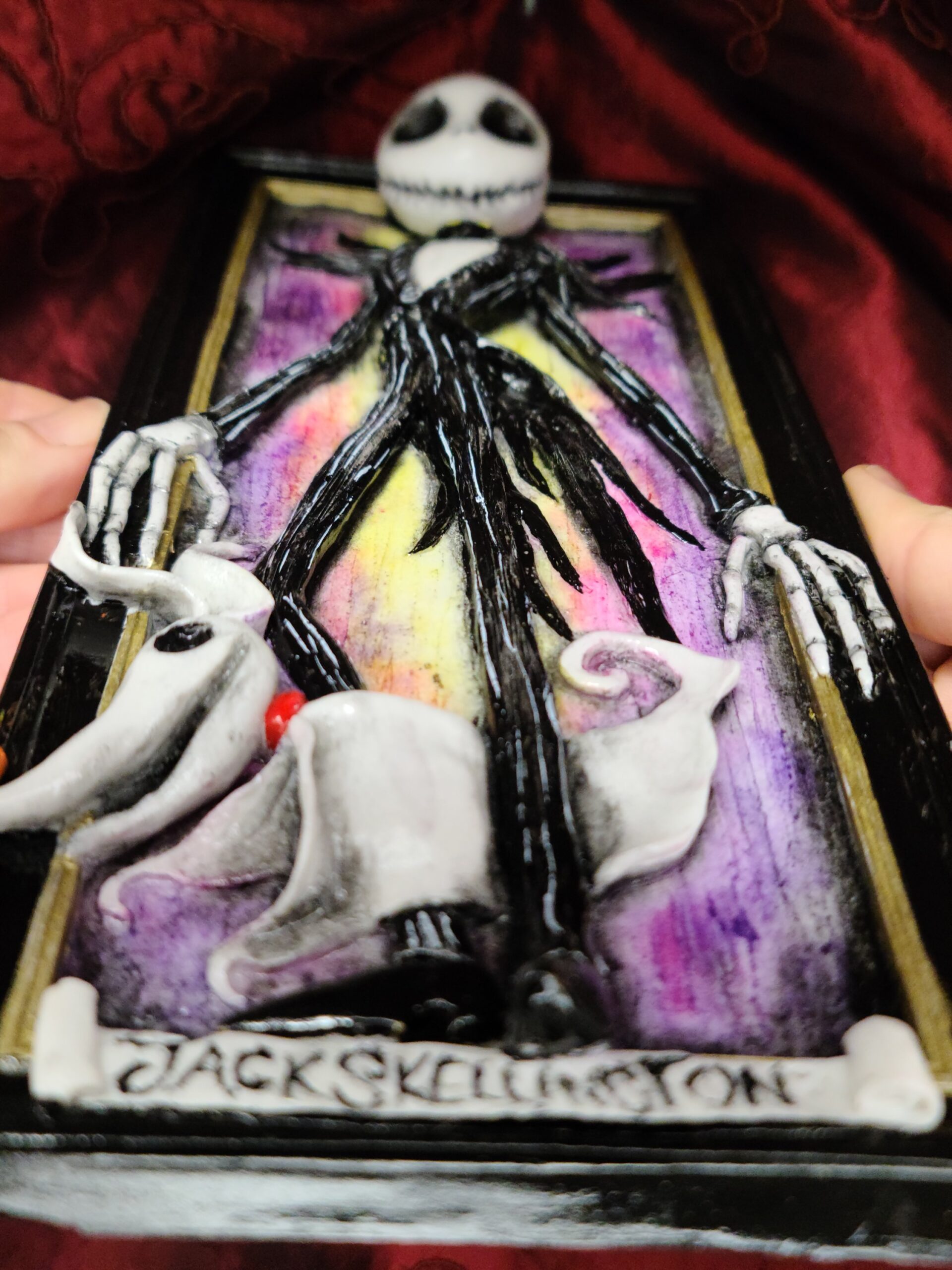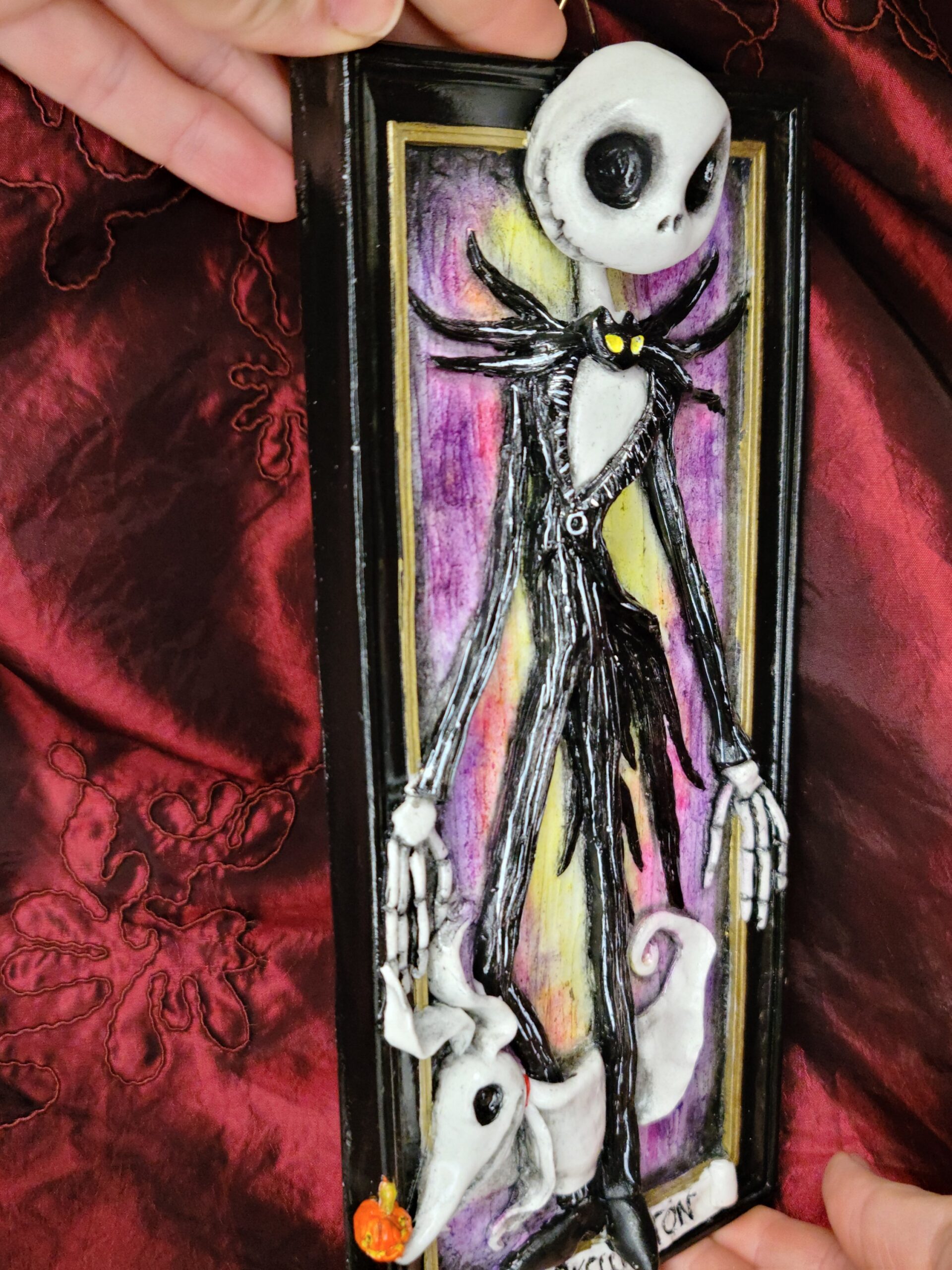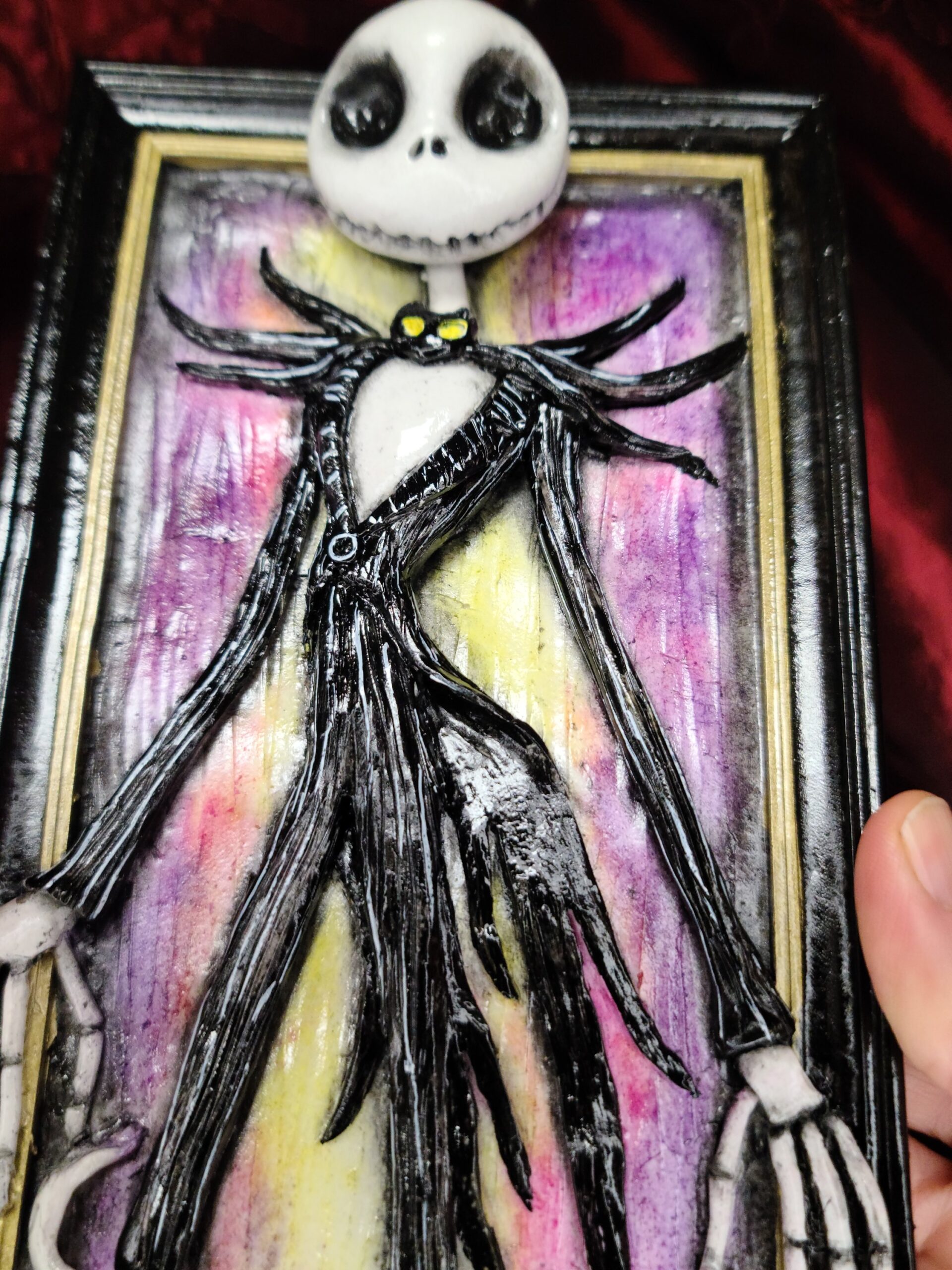 Perfetto come regalo particolare per chi adora Nightmare Before Christmas e i personaggi di Tim Burton. Ideale anche come regalo unico per chi cerca un’opera artigianale dal carattere originale, gotico e pieno di personalità.