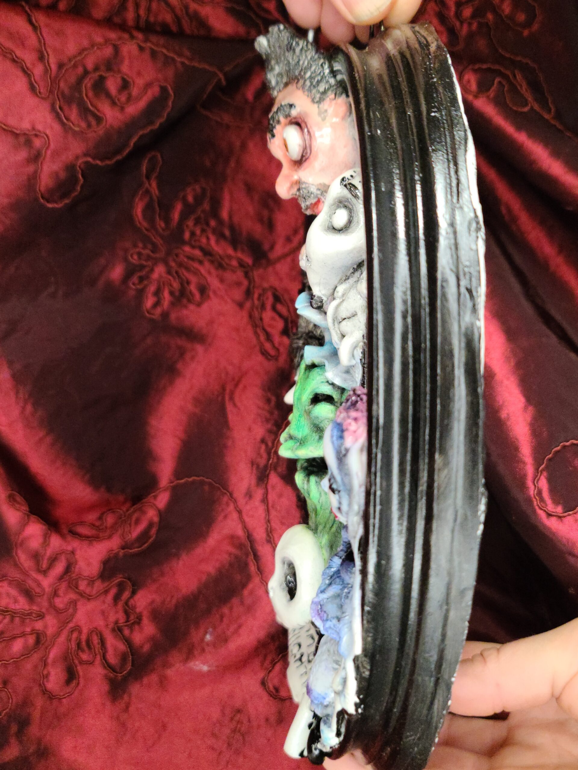 Il prodotto è rigorosamente fatto a mano da Serena Pieruccini, che ha curato ogni fase: progettazione, modellazione, realizzazione dello stampo in gomma siliconica, colaggio in resina, colorazione e finitura. Ogni dettaglio — dallo sguardo delirante di Burton alle pose emblematiche dei personaggi — rivela dedizione, precisione e sensibilità artistica.